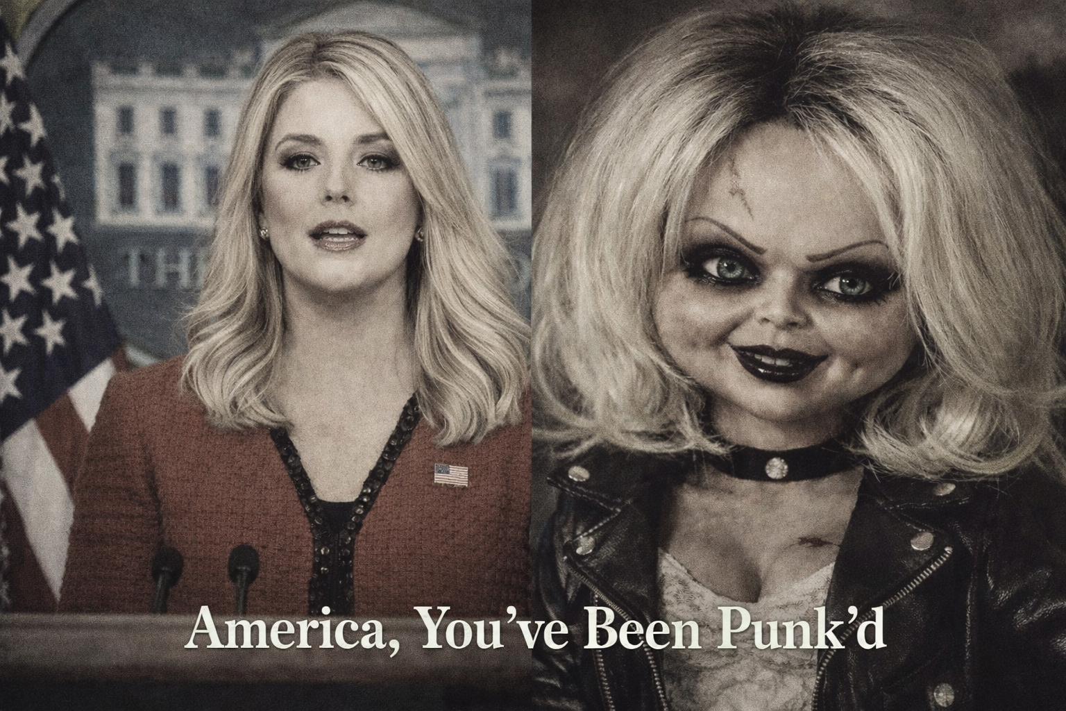 “Karoline Leavitt stands at the podium and in her best “‘Bride of Chucky”’ manner introduces Ashton Kutcher. He steps up to the podium and after tapping the microphone says, with a large shit-eating grin, “‘America, you have been Punk’d.”’