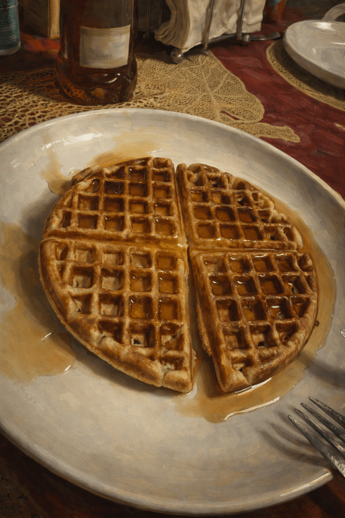 This isn’t due to a brain injury or a neurodiverse condition. I know it’s snowing. I could easily say “snow.” But I don’t, because those who know me understand that long ago, in some breakfast corner of my deep, dark past, I decided I like waffles far too much. Given the opportunity, I would eat them every day, in every way. (The possibilities are endless: with chicken, fruit, stuffed, savory, Belgian-style, as sandwiches… you get the idea.)